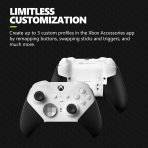 Battery life varies significantly with additional accessories, usage, and other factors. Testing conducted by Microsoft using preproduction units. xbox.com/elitebattery. Xbox Accessories app features – including button mapping and profile configuration – are available only on Xbox Series X|S, Xbox One, and Windows 10/11. Operating system updates may be required. Go to xbox.com/xboxone/controller-OS for more information.