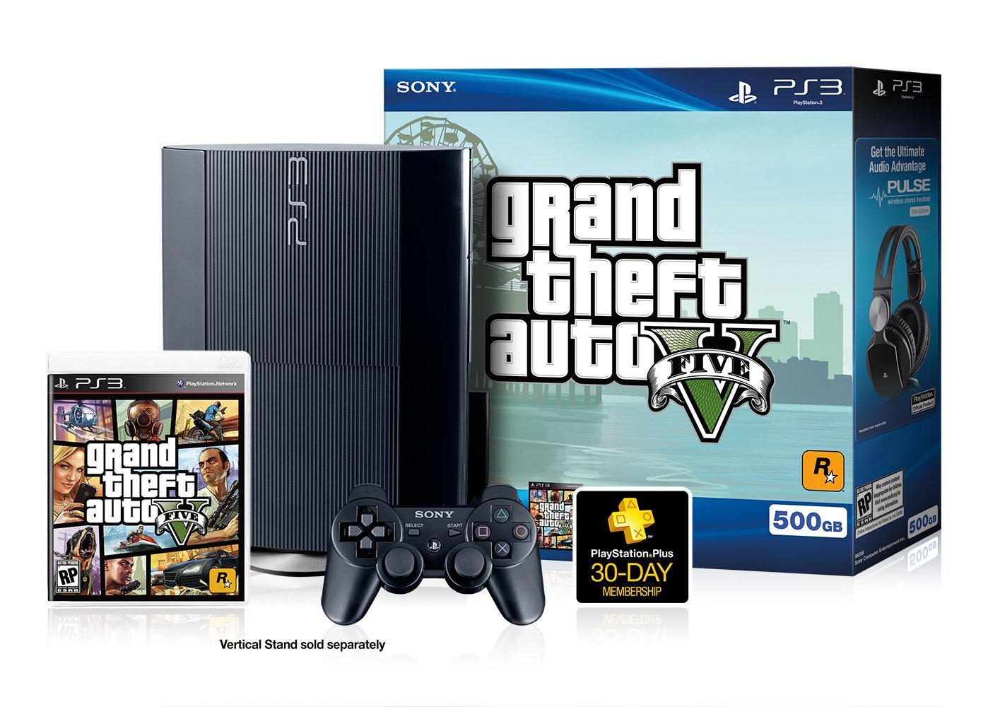 Bundle includes 500gb Super Slim model 500gb PS3 with power cable, video cable, and controller with charge cable. Also includes the game Grand Theft Auto V. Original box not included.Playstation 3 PS3 500gb Console Grand Theft Auto V Bundle – (Used)