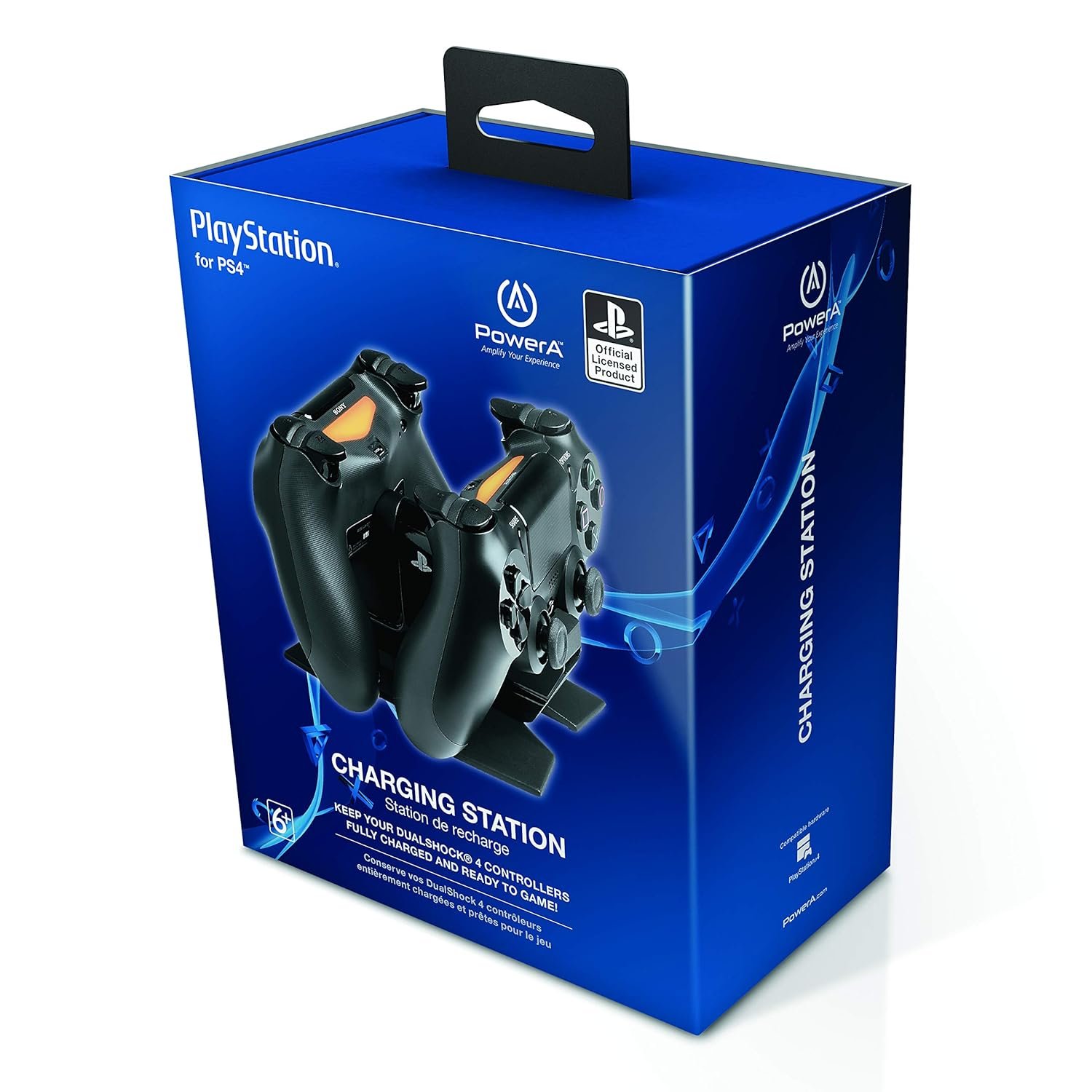 Charge and display your DUALSHOCK 4 wireless controllers with the officially licensed Charging Station for PlayStation 4. Charging is an ease – Simply place the DUALSHOCK 4 on either side of the station, and click down to see the LED base light up to indicate charging level. When fully charged, click down to release contact and simply leave the controller on the station. Feel confident your controllers are always ready to game as it charges on display alongside of your PS4 console