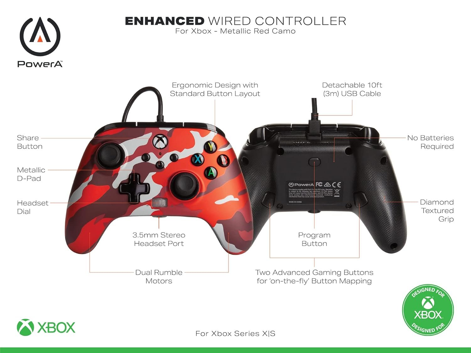 PowerA Enhanced Wired Controller for Xbox Series X|S – Metallic Red Camo