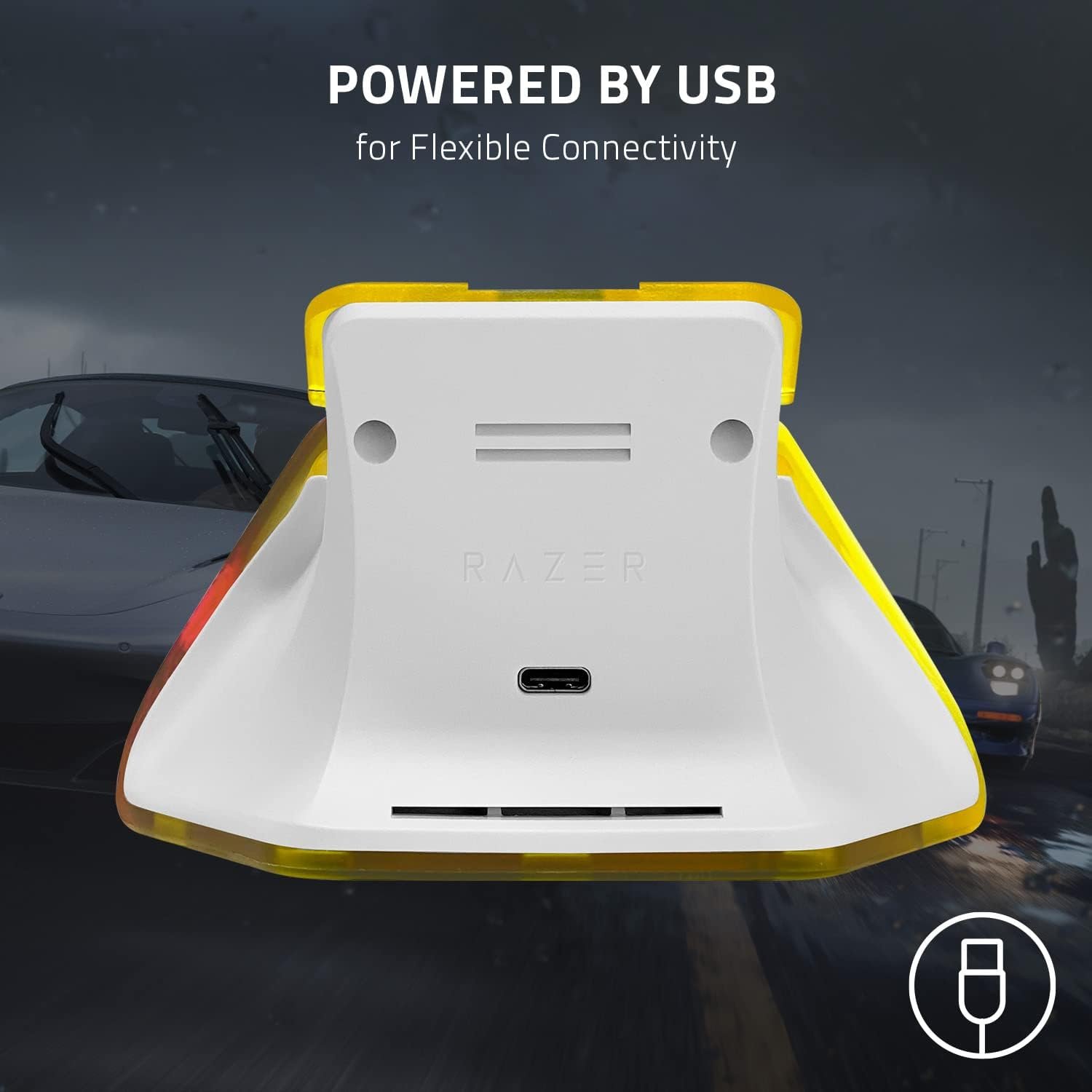 Grab the Xbox Wireless Controller – Forza Horizon 5 Limited Edition for the ultimate Horizon adventure, featuring racing-inspired custom grips and a first-ever transparent yellow finish. Take control over all terrain with textured trigger grip, and custom bottom and side dimple grip patterns inspired by perforated style performance car steering wheels. Look under the hood of the transparent, yellow finish with a custom-colored, visible rumble motor and lighting effects that play off the Xbox button. Feel the spirit of the Horizon festival with a color-shifting hybrid D-pad and asymmetrical thumbsticks in different bold colors. Includes exclusive content: Forza edition car, cosmetic item, and victory emote (downloadable content requires Forza Horizon 5 game, sold separately). Quickly pair with, play on, and switch between devices including Xbox Series X|S, Xbox One, Windows 10 PCs, and Android and iOS phones and tablets.* Drive-in style Grab the Xbox Wireless Controller – Forza Horizon 5 Limited Edition for the ultimate Horizon adventure, featuring racing-inspired custom grips and a first-ever transparent yellow finish. Includes exclusive content Comes with Forza edition car, cosmetic item, and victory emote (downloadable content requires Forza Horizon 5 game, sold separately). Stay on target Take control over all terrain with textured trigger grip, and custom bottom and side dimple grip patterns inspired by perforated style performance car steering wheels. Support for AA batteries is included on the rear. Custom color Look under the hood of the transparent, yellow finish with a custom-colored, visible rumble motor and lighting effects that play off the Xbox button. Feel the spirit of the Horizon festival with a color-shifting hybrid D-pad and asymmetrical thumbst