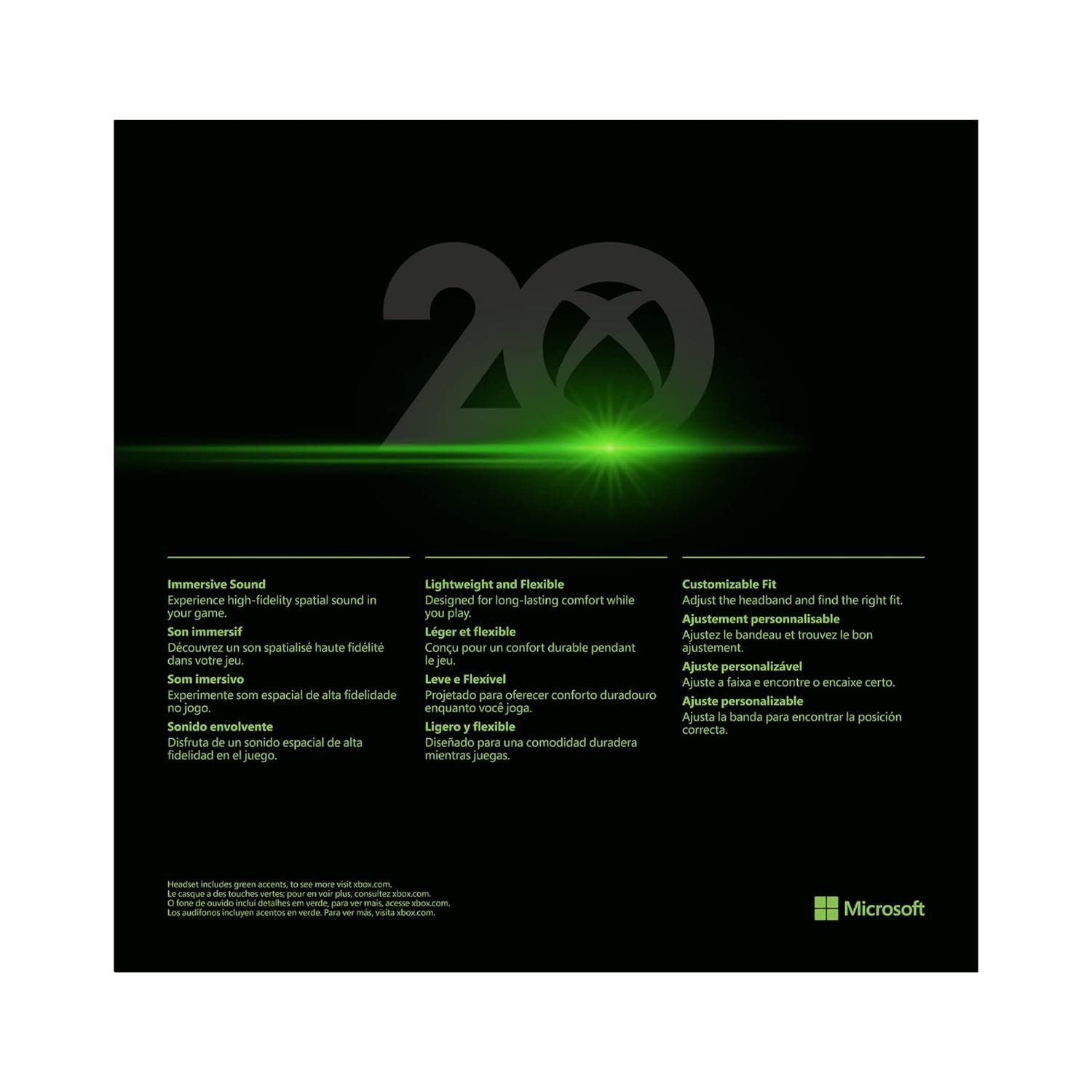 - Game loud and clear with the Xbox Stereo Headset – 20th Anniversary Special Edition in classic black with green touches that go back to the beginning, and so much more.